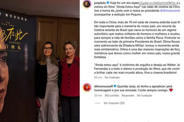 Com Janja e Dilma, ‘Ainda Estou Aqui’ é lançado na China